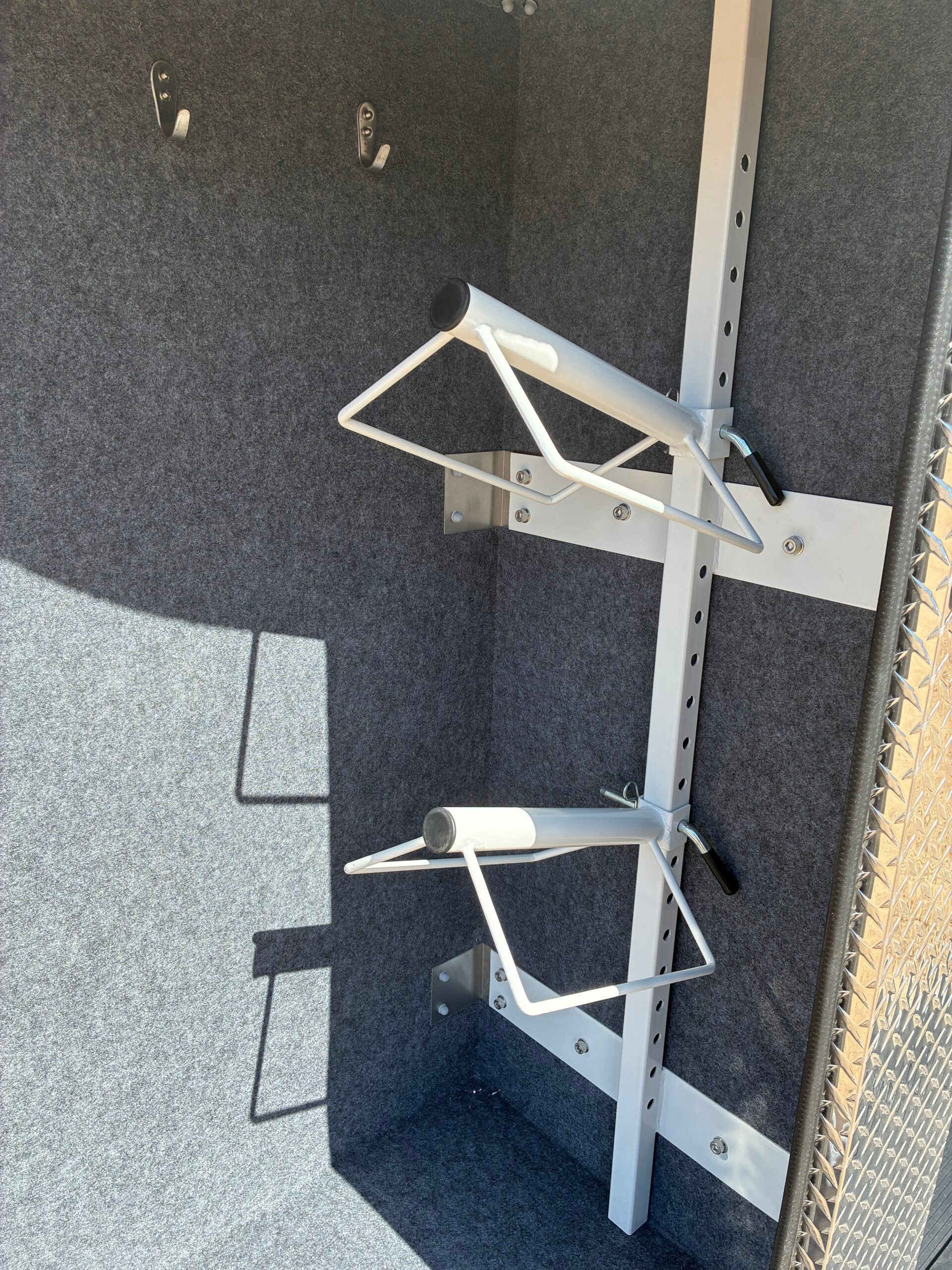 - Adjustable saddle racks