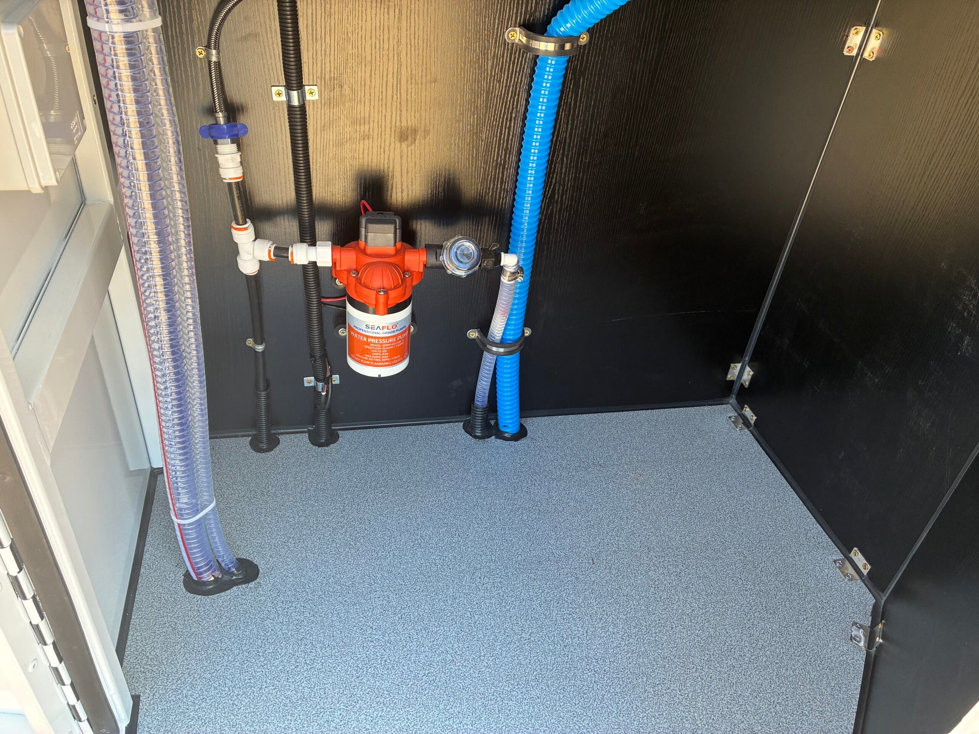 - Stainless-steel heavy-duty gas struts (2 x ramp door + 2 x storm door)