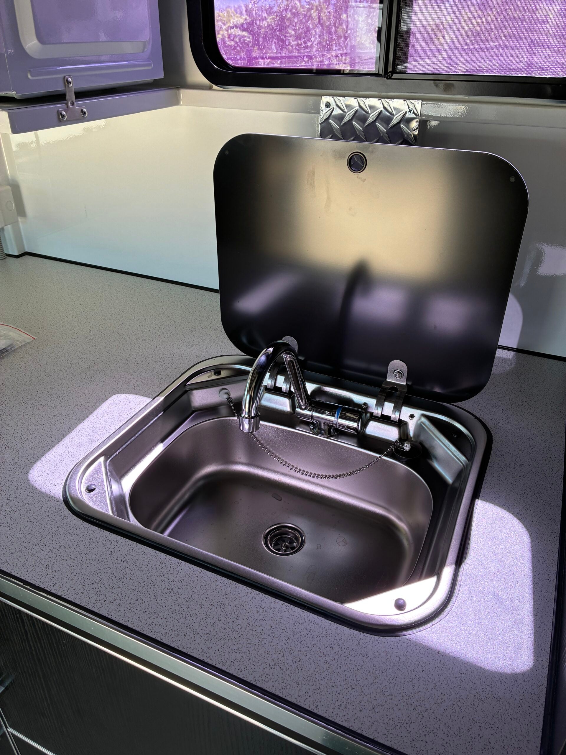 - 100-litre water tank, 12 volt pump and tap